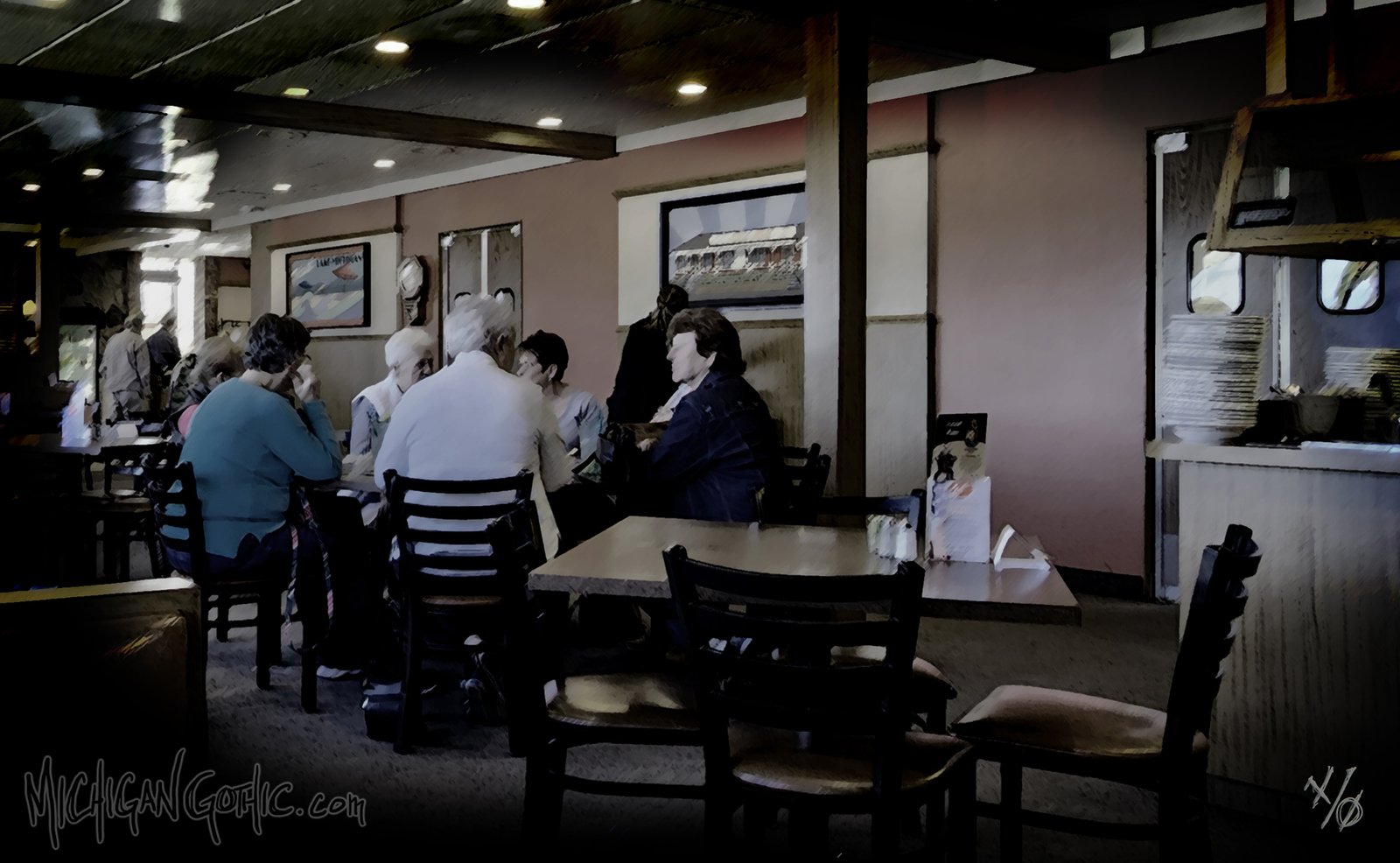 You bring waters, menus, extra napkins. You're a professional: you smile. A lot. Maybe a bit wider than necessary. It doesn't reach your eyes. If you just keep smiling, they'll eventually finish, you can bus their table, and it'll be over for another week.