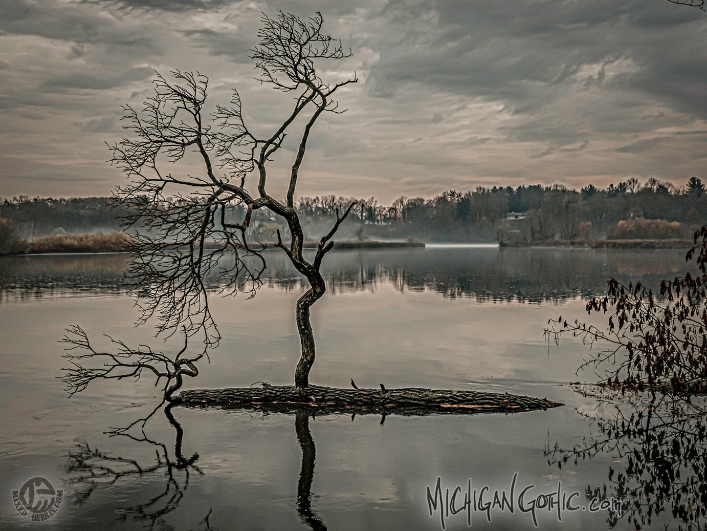 The river took her years ago, yet she still lives. She gradually drowns in the life-giving water she craved before her roots betrayed her, plunging her into the cold, slow currents to drift aimlessly as she slowly dies. Her peers stand resolute in quiet dismay as she parades their inevitable fate before them. She beckons to you from the placid waters. If only a kind stranger would help her back to the shore, she seems to imply, then perhaps she could begin her life anew. Her grasp proves unrelenting, however, and the mud where she languishes is thick and deep. For a little while, at least, she does not drown alone.