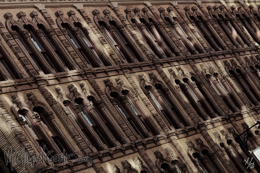 You usually drive by the old building so fast that you don't notice it. It's just visual background noise in the overstimulated city. Today, though, something catches your eye. Up there, in one of the tall uniform windows, a face peers back at you and a pale hand scratches fingers slowly down the glass. Do they need help? Are they thinking about breaking through the glass and taking flight, back to the freedom of a simpler time? Are they remembering that one summer in the country, when everything smelled like sunlight and the thick scent of oncoming rain? Or is there just a gas leak in the building and they're overcome with fumes? The mouth beneath the curled Victorian mustache opens wide, wider, impossibly wide. Black eyes bore into your skull. Then your cellphone pings, you keep driving, you forget. Thereafter, each morning when you awaken, you grasp at fragments of dreams in which you're staring out of a window with the sun in your face. Your mouth itches.